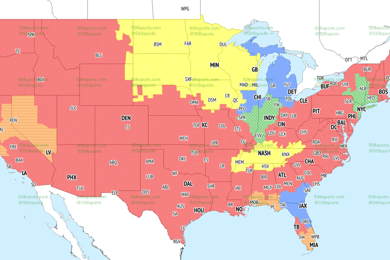 Each week, 506sports.com releases the broadcast map for the NFL and beyond. Since the Baltimore Ravens aren’t in prime time this Sunday, they’re contending with other teams for coverage.