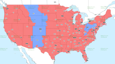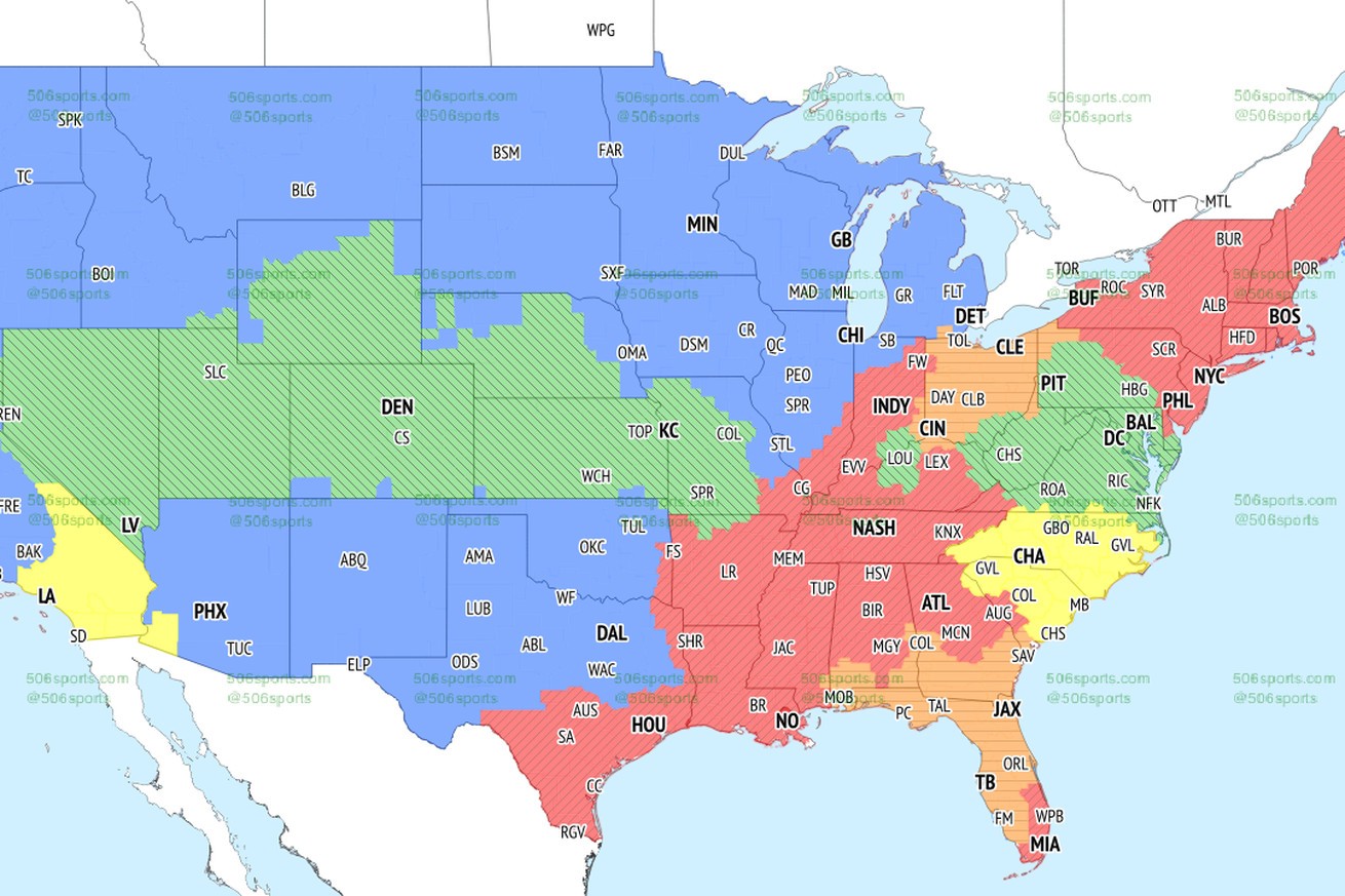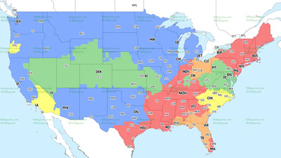 The Ravens come away with the DMV, Louisville, West Virginia and a belt spanning all of Nevada, Colorado, Kansas City and the majority of Missouri. Denver Broncos and Kansas City Chiefs fans will be able to root for — or against — the Ravens in the early window. The same goes for Pittsburgh, as half of Pennsylvania will be tuning into Ravens vs. Raiders.
