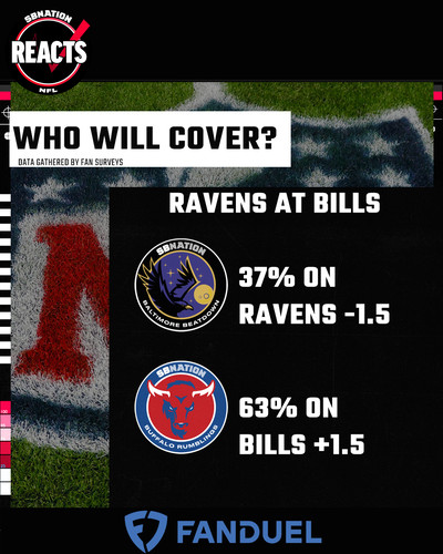 While the majority of Ravens fans are confident, the national fanbases — polled on all SB Nation team sites — are taking the Bills +1.5. More than likely, they’re believing the Bills to win this one, which has been a frequent occurrence this week from fans and national pundits.