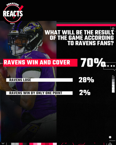 The majority of fans expect a win and to cover the narrow 1.5-point favorite the Ravens are placed on, while 28% of fans are bracing for the worst.