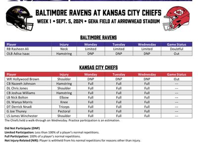 The final injury report released on Wednesday and both the Baltimore Ravens and Kansas City Chiefs are in excellent standing. However, at least one player will miss the game from both sides.