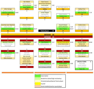 The updated depth chart