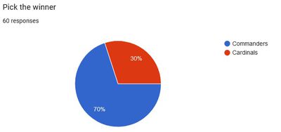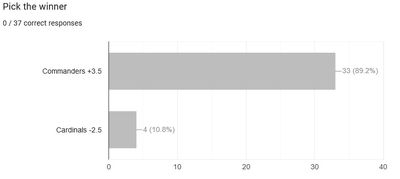 With Washington at +3.5 points, only about 11% of the 37 entries from Hogs Haven readers project the Cardinals to cover the spread, while 89% are backing the Commanders.