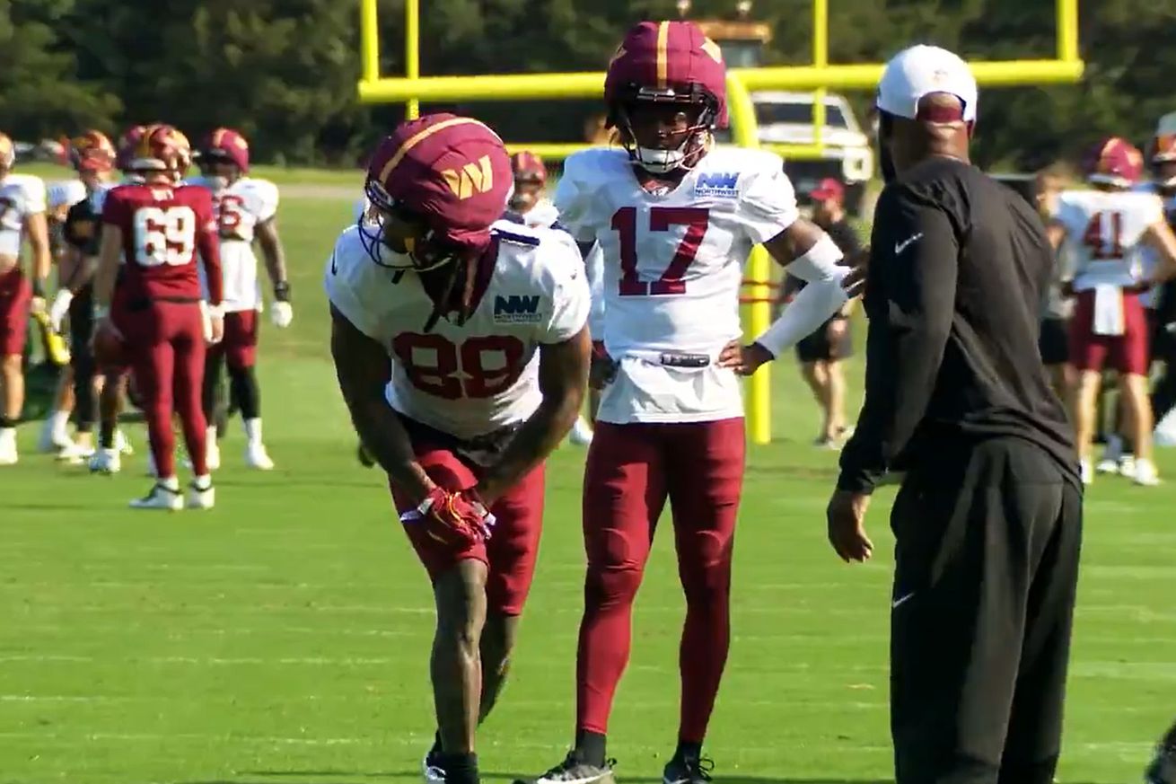 Jahan Dotson, Olamide Zaccheaus, Dyami Brown, and third-round pick Luke McCaffrey are also in what Dan Quinn described as a spirited fight for the job.