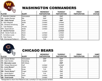 Thursday injury report#CHIvsWAS | |#RaiseHail