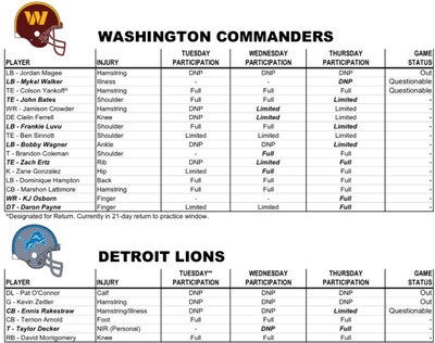 The Washington Commanders have been going through kickers at an alarming rate this season, and Zane Gonzalez being listed on this week’s report with a hip injury was concerning. He was limited on Wednesday, but was a full participant the last two days. The team worked out three kickers this week, but won’t need to sign any of them for Saturday night’s playoff game.