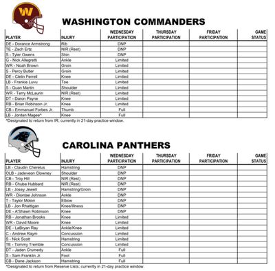 Wednesday injury report#CARvsWAS | #RaiseHail