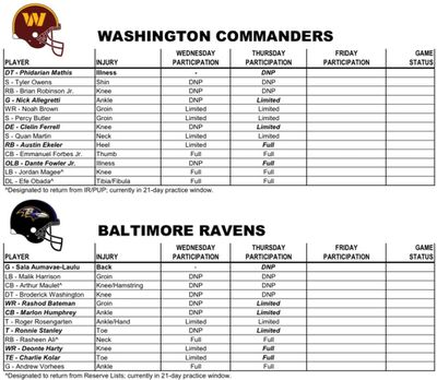 The Washington Commanders had their second practice of the week, and several players returned to the field. They are preparing for their Week 6 game against the Baltimore Ravens and have several players still dealing with injuries. Washington is on the road again this week, but there’s a little less travel to worry about with the team taking the bus “up the street”.