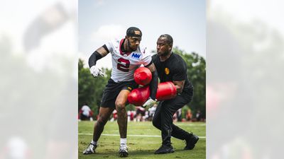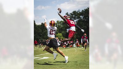 The straight-line speed that caused havoc for college defenders is evident — even if there’s no need for the turbo gear in the padless practices — as is the natural ease when swerving around encroaching linemen and linebackers. Similar to how the coaches aren’t pushing the pace on Daniels, the rookie isn’t racing through these early steps.