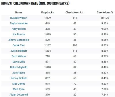 Captain Checkdown: Examining NFL quarterbacks by their reliance on checkdown passes