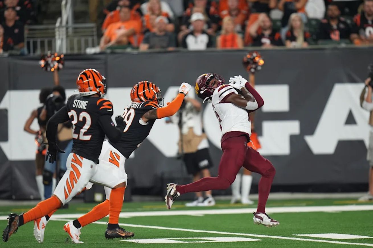 McLaurin spun around cornerback Cam Taylor-Britt — remember when Taylor-Britt said Washington had a “nice college offense?” — then blew past safety Geno Stone to catch and the over-the-shoulder pass from Daniels, who moments later capped the drive with a four-yard touchdown run Monday night at Paycor Stadium.