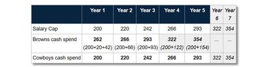 And this could go on in year 4 and 5 (and beyond) where the Browns simply add the cap increases from two years out to their cash spend.