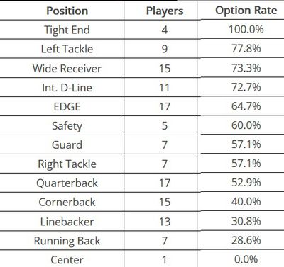 With the final outcomes in for this years option eligible rookies I thought it would be a good idea to do a quick look at how the option rates have fared since the NFL went to a fully guaranteed fifth year option starting with the 2018 NFL class.