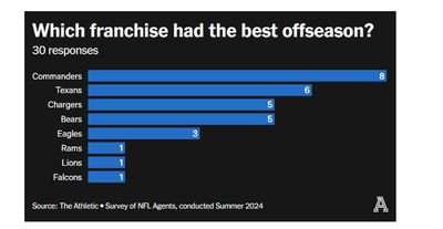 In The Athletic’s sixth annual NFL agent survey, the Commanders received the most votes (eight of 31) as the winner of the offseason. (The agents were granted anonymity to protect themselves and their clients.)