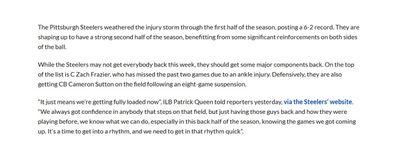 Steelers excited about ‘getting fully loaded’ as healthy players return after bye