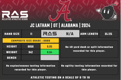 JC Latham is a Junior offensive tackle from the University of Alabama. He started every game over the last two seasons and played in all 14 in 2021.