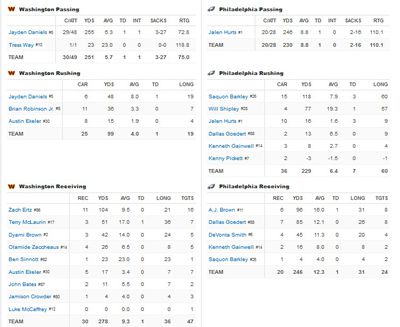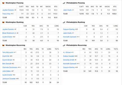 Two plays later, on 3rd & 12, Darius Slay made a good pass breakup against Luke McCaffrey near midfield to force 4th & 12. Daniels was sacked at the 31-yard line, and any hope that the Commanders had for staging an improbable comeback appears to be erased.