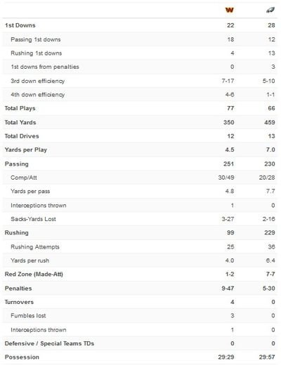 The Commanders offense returned to the field with 3 minutes remaining and all swagger stripped away.