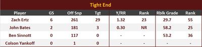 None of the other TEs has enough receiving activity to permit meaningful evaluation of receiving performance.