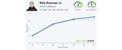 In Denton, Texas, Billy Bowman, Jr. was a standout two-way player. He had over 1,200 yards receiving, nearly 20 total touchdowns, and six turnovers forced, powering his high school to a state championship his senior year. The four-star recruit turned down offers from Notre Dame, Georgia, Penn State, Alabama, Texas, and several other schools to play for Oklahoma.