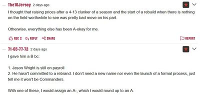 One big issue for a large chunk of the fan base has to do with the 2-2-22 rebranding when it was announced that “We are…the Commanders”. While some fans have embraced the new identity, a lot of fans want to see that rebranding undone, or redone, or recalibrated. While a few fans continue to insist that the team will never be anything but the Redskins, the vast majority know that there’s no going back there. What many fans are looking for is a “do over” on the rebranding. They recognize that, while there will never be universal agreement on any new team name, they feel like it’s worth going through the effort and expense to get a name that’s better. Some are driven by the lack of identity associated with the Commanders name, which somehow comes across as more generic than the previous Washington Football Team non-brand. Others simply see the failed re-brand as the last big middle-finger to the fanbase from the team’s former owner; many of those fans see another rebrand as the path to eliminating the last vestiges of that 24-year nightmare.
