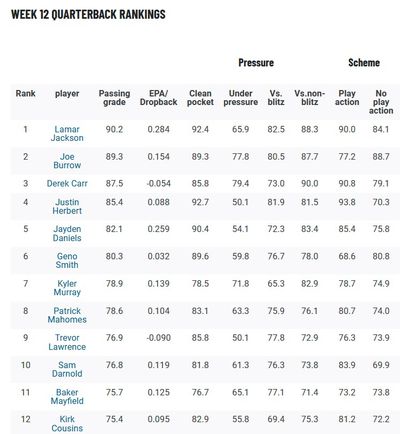 2024 NFL quarterback rankings ahead of Week 12