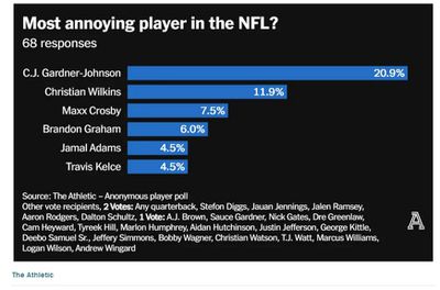 the only category the Eagles were really well-represented in, was Most Annoying Player in the NFL. Of the 68 players who voted in the category, 14 (20.9%) named C.J. Gardner-Johnson, putting the safety in the No. 1 spot on the list.