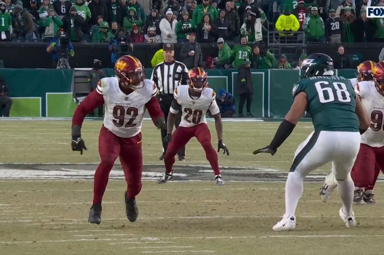 The Washington defense swarmed Jalen Hurts on 2nd down, but the QB managed to ditch the ball out of bounds with Clelin Ferrell draped on him to bring up 3rd & 5, which the Eagles converted with a completion for 11 yards to DeVonta Smith.