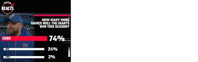 An incredible 72% of fans nationally picked the Ravens to cover 14.5 points against New York! At this point the Giants are really only competing for the first pick in the 2025 draft. In the survey of Giants fans on Big Blue View this week, 74% of them predicted that the G-men will not win another game in the regular season, while 24% predicted a single win.