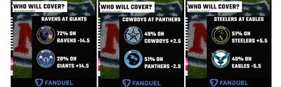 Meanwhile, the near 50/50 split on the outcome of the Steelers-Eagles ‘Battle of Pennsylvania’ game should encourage Eagles fans since it has a point spread of +5.5 points for the Steelers.