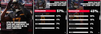 Overall confidence in the team remains at a high level. This week, 97% of fans surveyed expressed confidence in the Commanders’ direction.