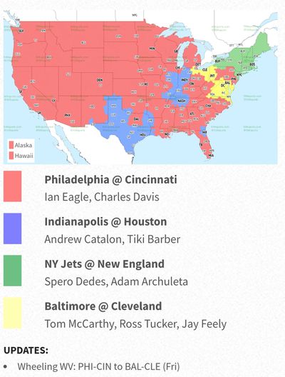 CBS also has four games on their early afternoon schedule, and they’ve got the only NFC East game on at this time slot. The Philadelphia Eagles are visiting Joe Burrow and the Cincinnati Bengals. Philly is a half game back from the Washington Commanders and they’re trying to keep pace with the best team in the division. The other three games are AFC division matchups.