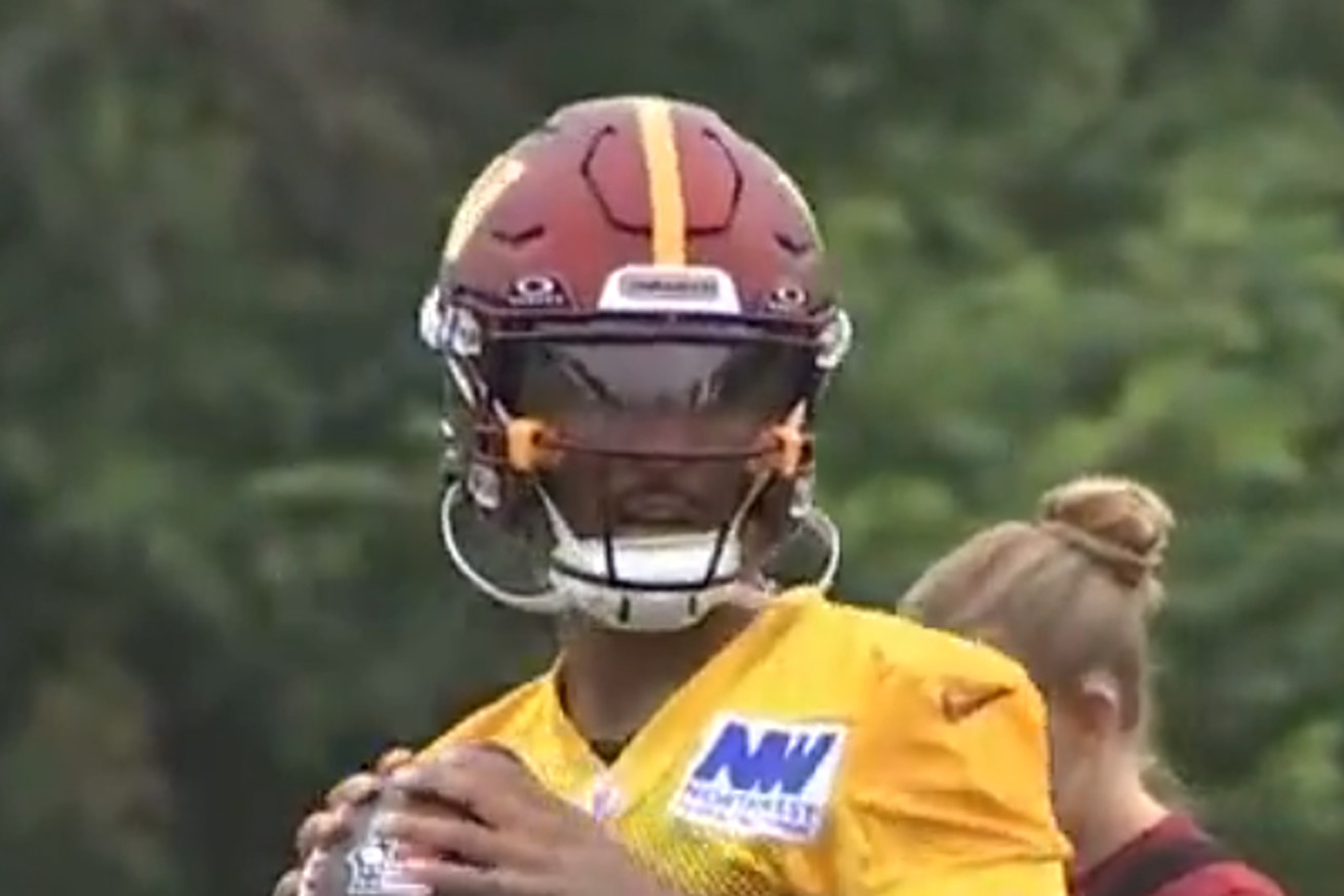 DAILY DOSE OF DANIELS: Check out #Commanders rookie QB and 2024 2nd overall pick Jayden Daniels at his first NFL training camp practice@JPFinlayNBCS @Gio_Delfa @nbcwashington #HTTC pic.twitter.com/XOBGdUW5dZ