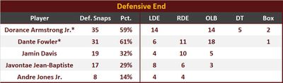 Jamin Davis had 2 solo tackles and 1 assist, with 1 TFL and 2 defensive stops. Javontae and Andre did not register any defensive stats.