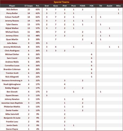 A roundup of snaps, position alignments, and key stats
