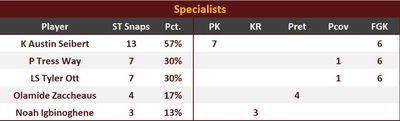 There were no punt returns or punt coverage on Monday night. The special teams units also avoided penalties.