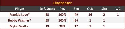 Jeremy Chinn played almost exclusively in the box and covering TEs in the slot. He led the team with 7 tackles and 1 assist, with 1 defensive stop. In 21 coverage snaps, he was targeted once, allowing a 15 yd reception by TE Mark Andrews.