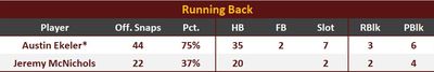 Jeremy McNichols rushed twice for 9 yds and was not targeted as a receiver.