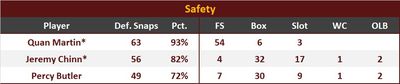 Quan Martin played a lot of single high free safety. He was targeted twice in coverage and allowed a 44 yard reception by Zay Flowers and a 38 yard reception by Mark Andrews for a total of 82 yards. He made 4 tackles and 1 assist with 1 stop.