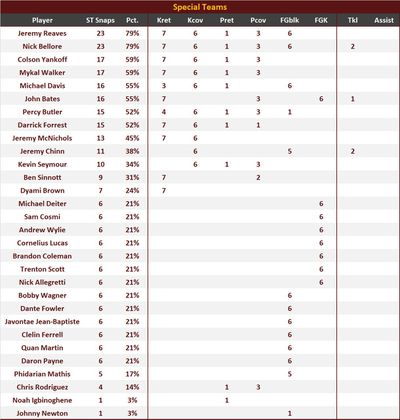 Michael Davis also had a missed tackle. There were no penalties on teams this week, for the third time this season.