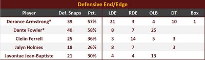 Dorance Armstrong led the way with 2 sacks, including a strip sack forcing a turnover, 2 tackles for loss and 1 more solo tackle. While his total pressure rate of 8% might be a little low, each of his pressures were high impact.