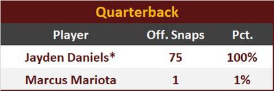 Marcus Mariota played one snap in a botched 4th and 1 conversion attempt which lost 1 yard to end the Commanders’ first offensive possession on downs. Things got better after that.