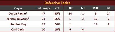 Sheldon Day had 1 tackle assist. Carl Davis did not register any defensive stats.