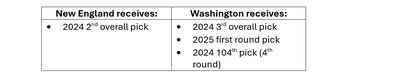 This trade would allow Washington to still take one of the top-3 quarterbacks in the draft; alternately, Washington could consider a premium player like Marvin Harrison Jr.