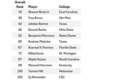 Below is a list of college CBs who will be entering the NFL via the draft in April, ranked by CBS Sports.