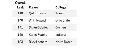 Below is a list of lower-ranked college quarterbacks who will be entering the NFL via the draft in April, ranked by CBS Sports. I have focused on later round prospects since no player drafted to the Commanders would have a realistic chance of starting any time in the next several seasons (outside of major injury to Daniels). The days of evaluating the top 3 or 4 QBs in the draft are over for the foreseeable future.