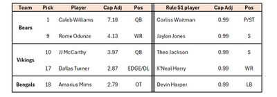 Given the general nature of positional spending and the limited number of items I plan to focus on, making adjustments for these 5 players/3 teams (if needed) should be sufficient. The cap difference between Day 2 & 3 picks and the player each replaces is small enough (and there are few enough unsigned players) to make this trivial for the scope of this article.