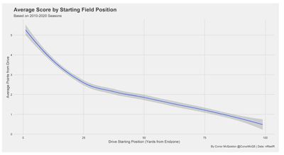 One of the strongest correlations in NFL football is between starting field position and points scored.