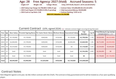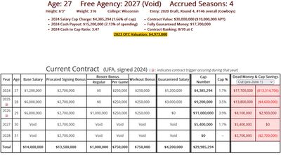 Like Armstrong, Biadasz has two void years. His void years will have a $5.4m impact on the 2027 salary cap if he’s not extended. The team reduced the 2024 cap hit by about $1.8m through the use of these void years.