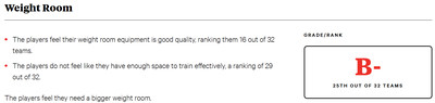 Despite progress, the facility itself remains a major issue. The building is old and in need of major renovation. Players single out the locker room as the area that needs attention.